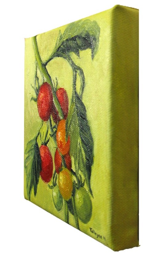 As promised, here’s the better quality image of Homegrown. A few people wanted to know what a gallery wrapped canvas looks like, so I’ve also included a side-view of the canvas. There’s nothing like experiencing art in person, but I think this photo is a good depiction of the original. Much better than the first try!
