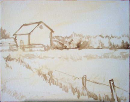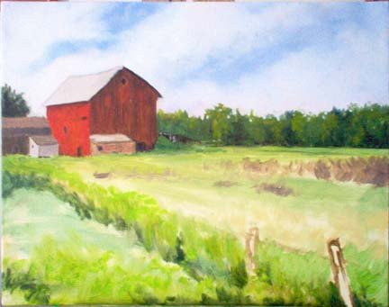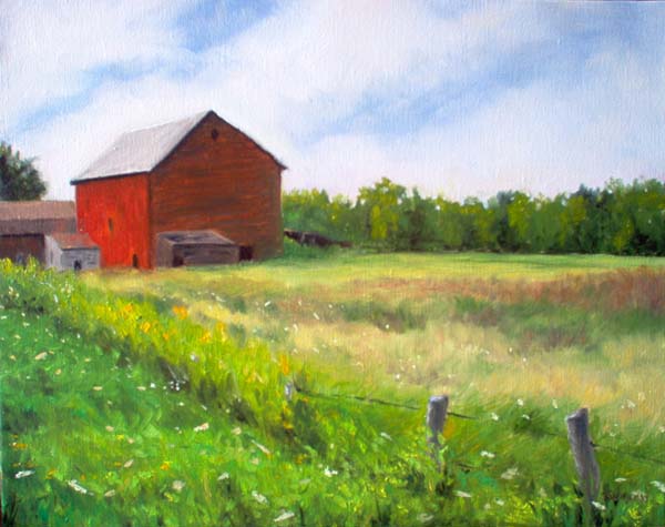 This painting was inspired by a farm close to home. I took many photos of it last summer and have been meaning to paint it since then. I am so pleased with the way this one turned I may do a larger version of it.