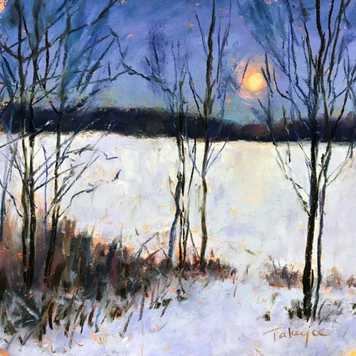 Creative February: Winter Moon February 23, 2018March 19, 2018 TakeycePastel Winter Moon | 6×6” | pastel SOLD Day 23 of #creativefebruary! Inspired by the moon rising over the snow covered frozen lake. Until next time… Takeyce
